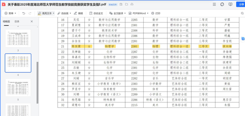 3、2025年9月,第十四届湖北省师范生教学技能竞赛初赛三等奖;