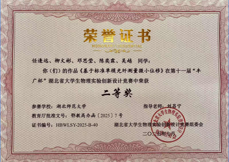 6、第十一届“丰广杯”湖北省大学生物理实验创新设计竞赛,省级二等奖;