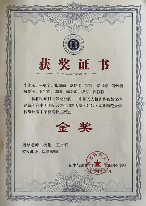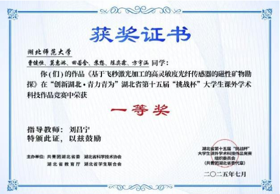 1、湖北省第十五届“挑战杯”大学生课外学术科技作品竞赛,省级,一等奖;
