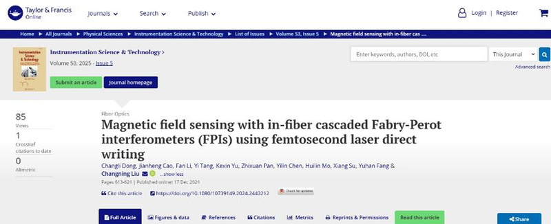 4、《Magnetic field sensing with in-fiber cascaded Fabry-Perot interferometers (FPIs) using femtosecond laser direct writing》国家级;