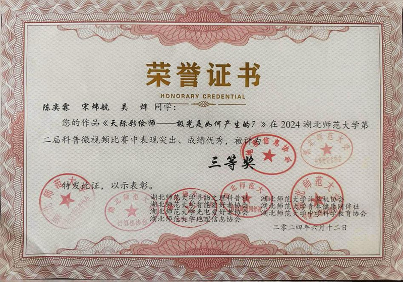 2、2024年10月,第七届全国科学实验展演汇演活动暨2024年湖北省科学实验展演汇演活动,省级二等奖;