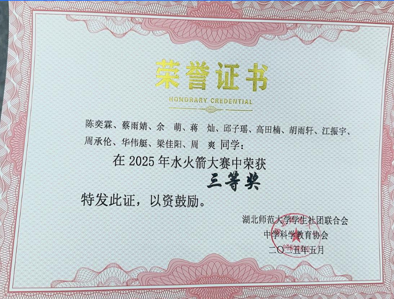 16、2025年太阳成集团tyc33455cc水火箭大赛,校级三等奖;