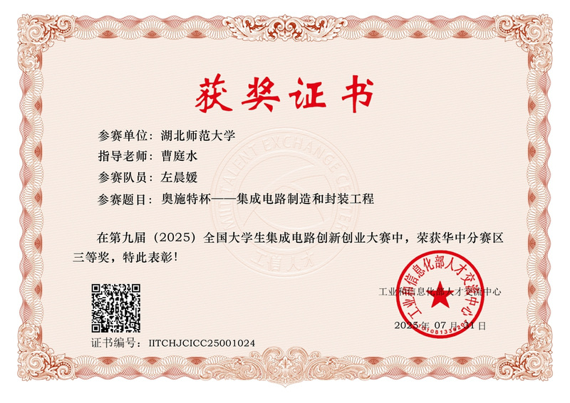 2025年7月第九届全国大学生集成电路创新创业大赛华中分赛区三等奖