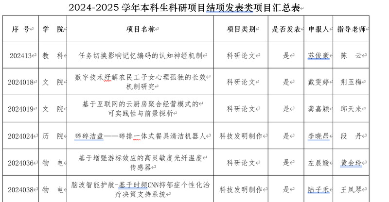 2025年6月2024-2025学年本科生科研项目结项