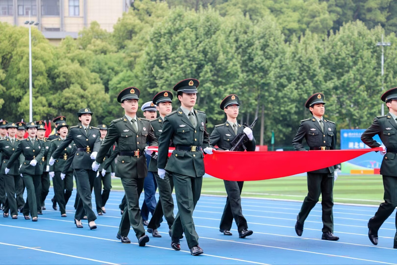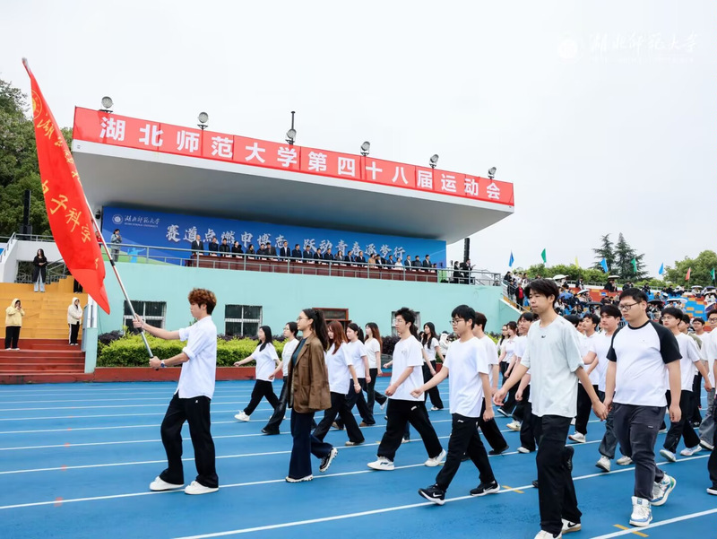 开幕式活动有序开展,仪仗队率先阔步而来,成为赛场之上亮眼的先行力量。整齐的队列身姿挺拔,坚定的目光斗志昂扬,铿锵步履踏响奋进节拍,以庄严大气的风貌拉开校运会开幕式的华美序章,彰显出湖师学子严守纪律、昂扬向上的优良素养。