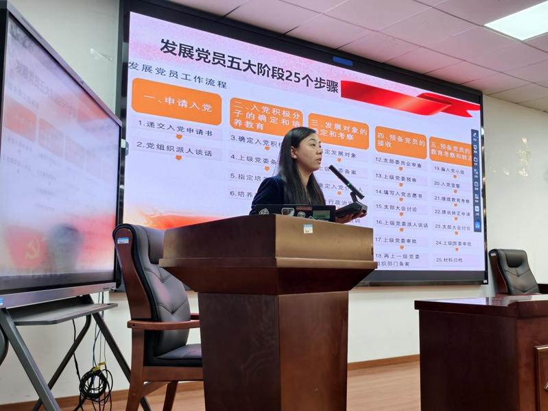 培训期间,四位主讲老师紧扣党的理论根基与成长实践,带来层层递进、立意深远的专题授课。校党委组织部副部长杨娇老师系统拆解党员组织发展全流程,深入阐明发展工作的规范要求与核心准则;校党委统战部常务副部长熊荣伍老师以《中国共产党的光辉历程》为授课主题,循着百年历史脉络梳理重大关键节点,回望党的峥嵘来路,深刻诠释百年奋斗铸就的伟大功绩;学院组织员马戎老师以《先进政党的显著标志》为切入点,深刻剖析我们党的根本性质与先进性内核;学院党委书记孙丹娟老师围绕《正确入党动机的培养与实践》展开专题讲授,引导学员叩问入党初心、校正思想航向,进一步筑牢主动向党组织靠拢的坚定信念与思想自觉。